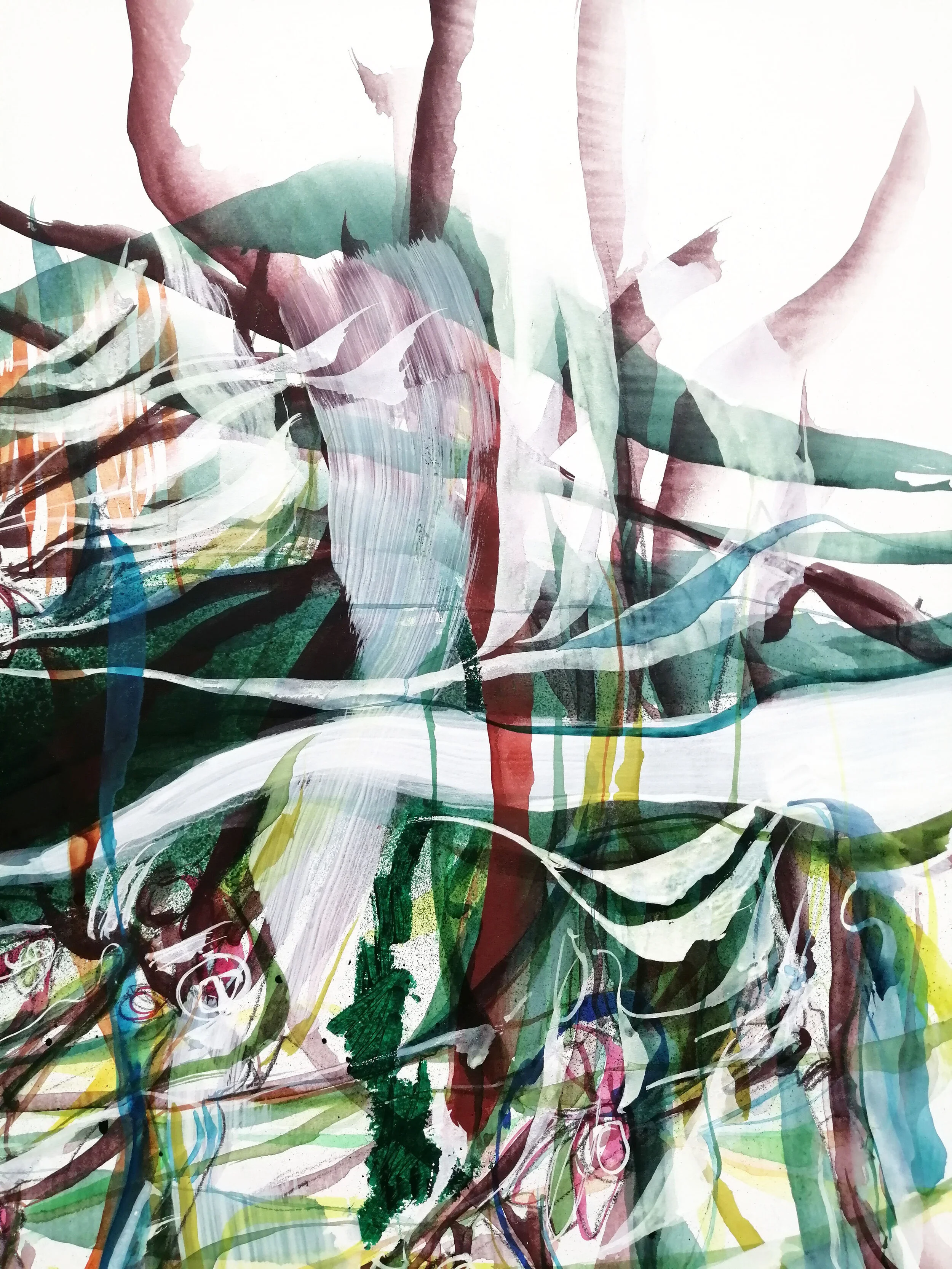 Dawn chorus, watercolour, acrylic, oil stick, spraypaint, pen & ink, 109 x 140cm, February 2020, £950