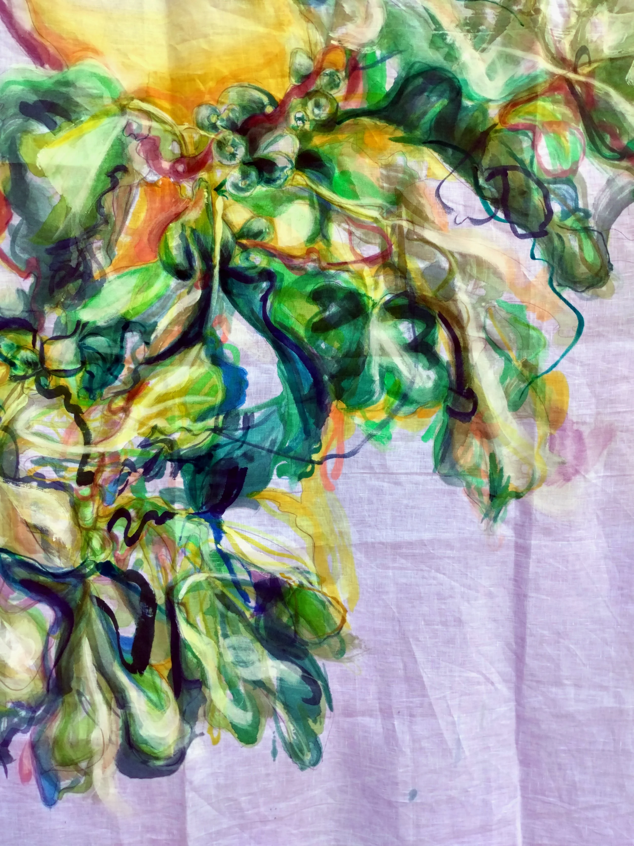 Succulent Fig, 150 x 150cm, watercolour on linen, July 2025, £995